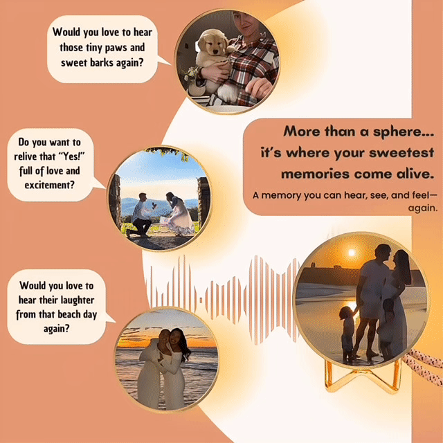 Revive los sonidos, las imágenes y los momentos que marcaron tu vida. Porque no es solo una esfera... Es un recuerdo que puedes ver, oír y sentir de nuevo.